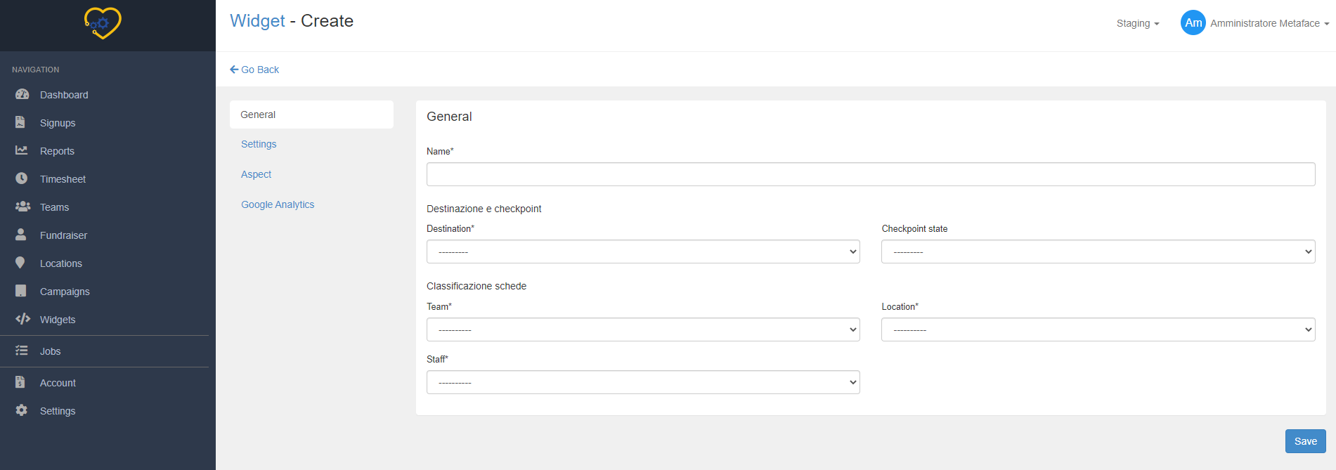 Create a new widget from your Metaface web app by navigating to the "Widget" page and clicking "Add new widget”.